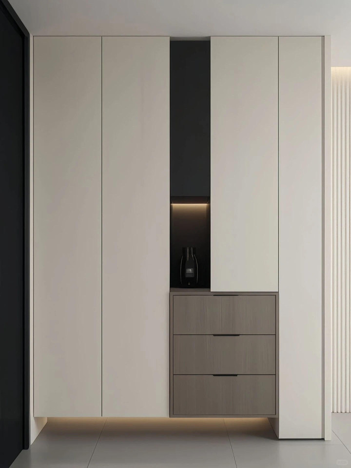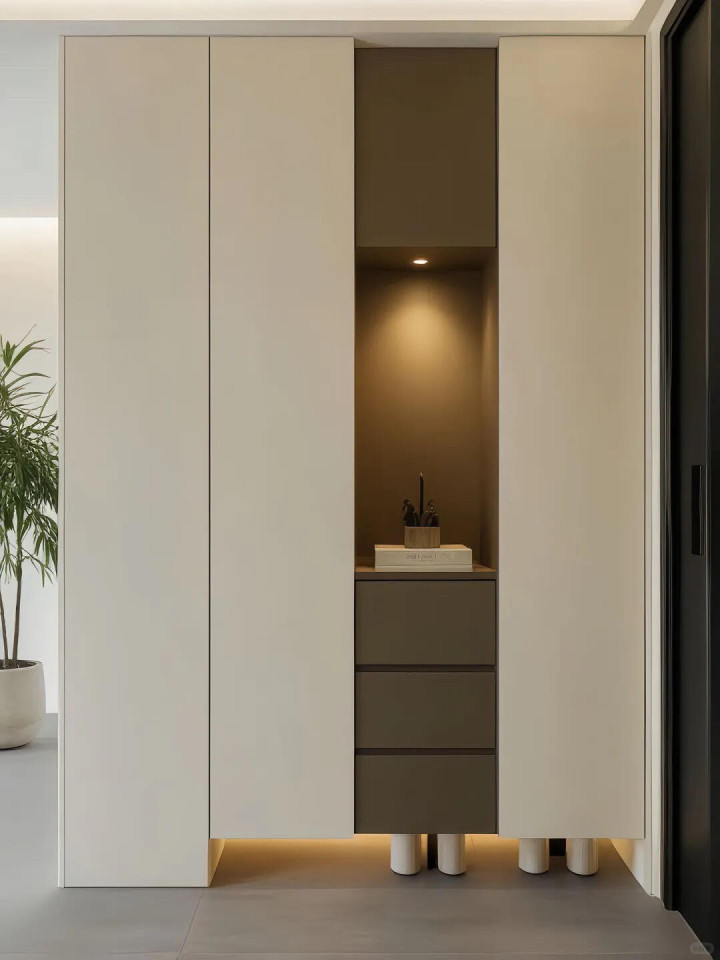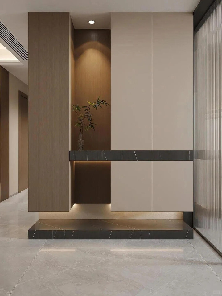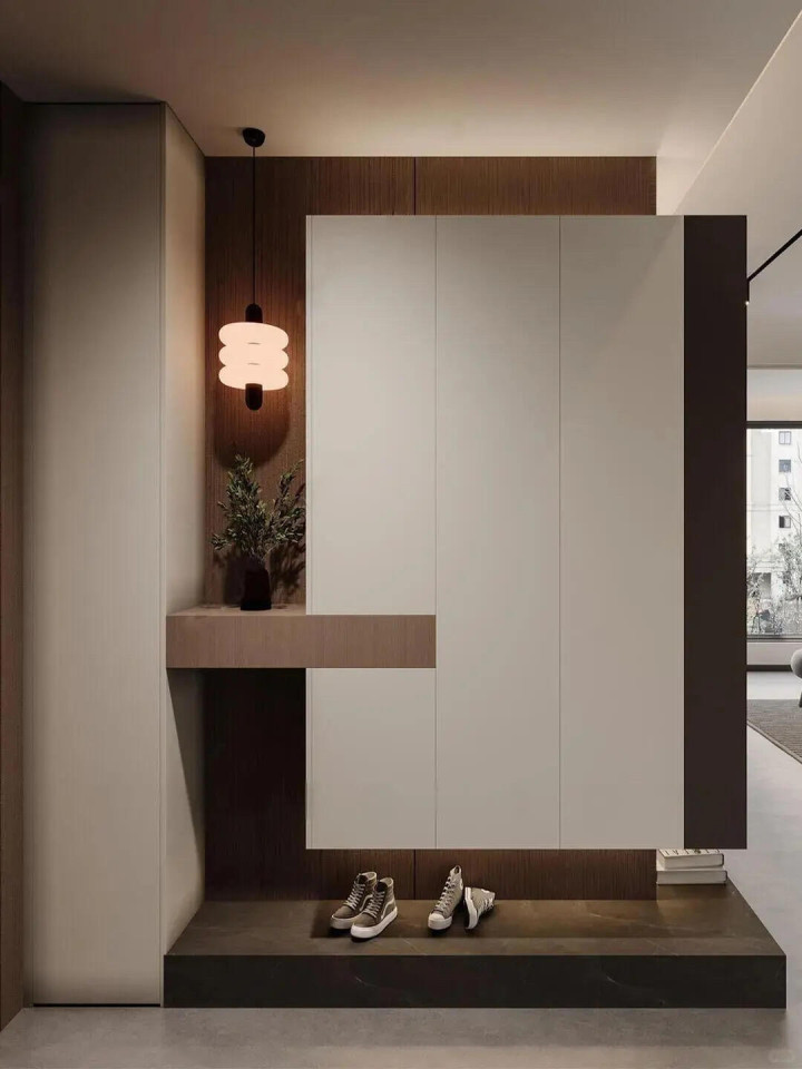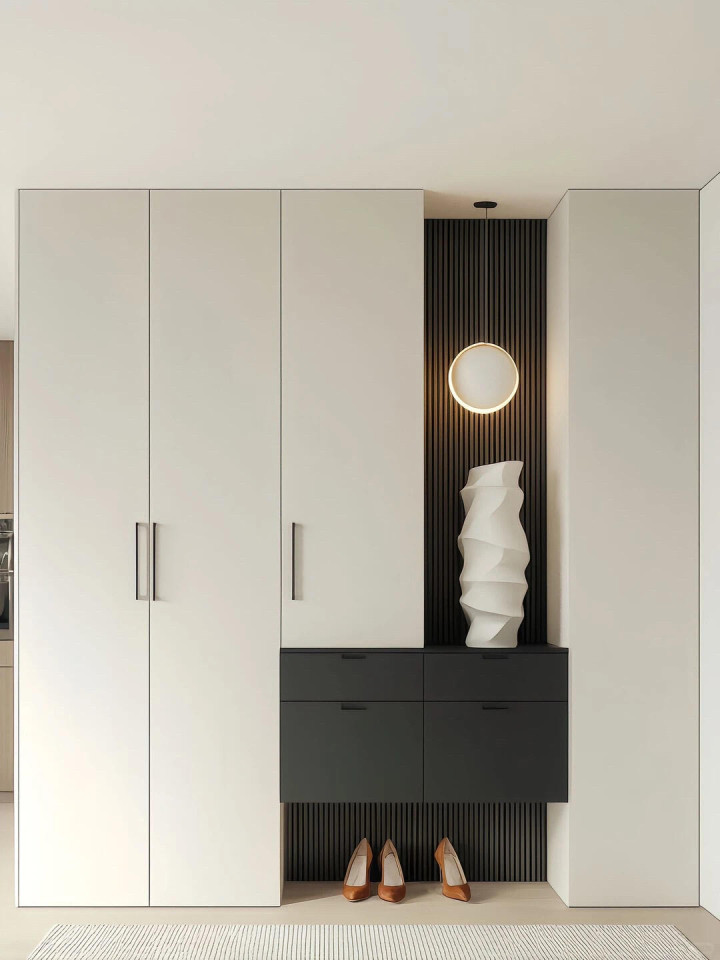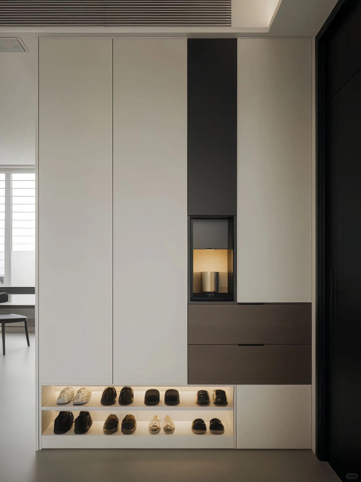 9组入户玄关柜把家的仪式感拉满, 奶白+黑白灰整体效果还是不错的